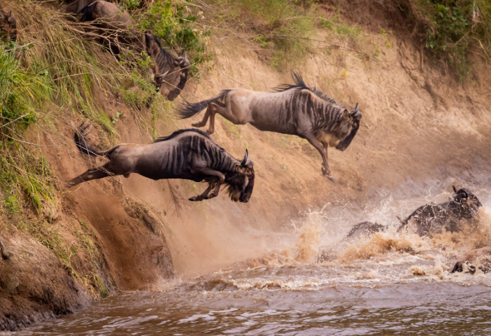 Stell dir vor, wie du in einem Safari-Jeep sitzt, den Wind in deinen Haaren spürst und die Geräusche der Wildnis um dich herum hörst. Die Sonne geht über der Savanne auf, und die goldenen Strahlen tauchen die Landschaft in ein magisches Licht. Vor dir erstreckt sich die Tierwanderung, ein endloser Strom von Tieren, der sich in die Ferne erstreckt. Löwen lauern in der Nähe, bereit für die Jagd, und Raubvögel kreisen am Himmel, auf der Suche nach Beute. Du fühlst dich lebendiger denn je, während du dieses Naturspektakel beobachtest.